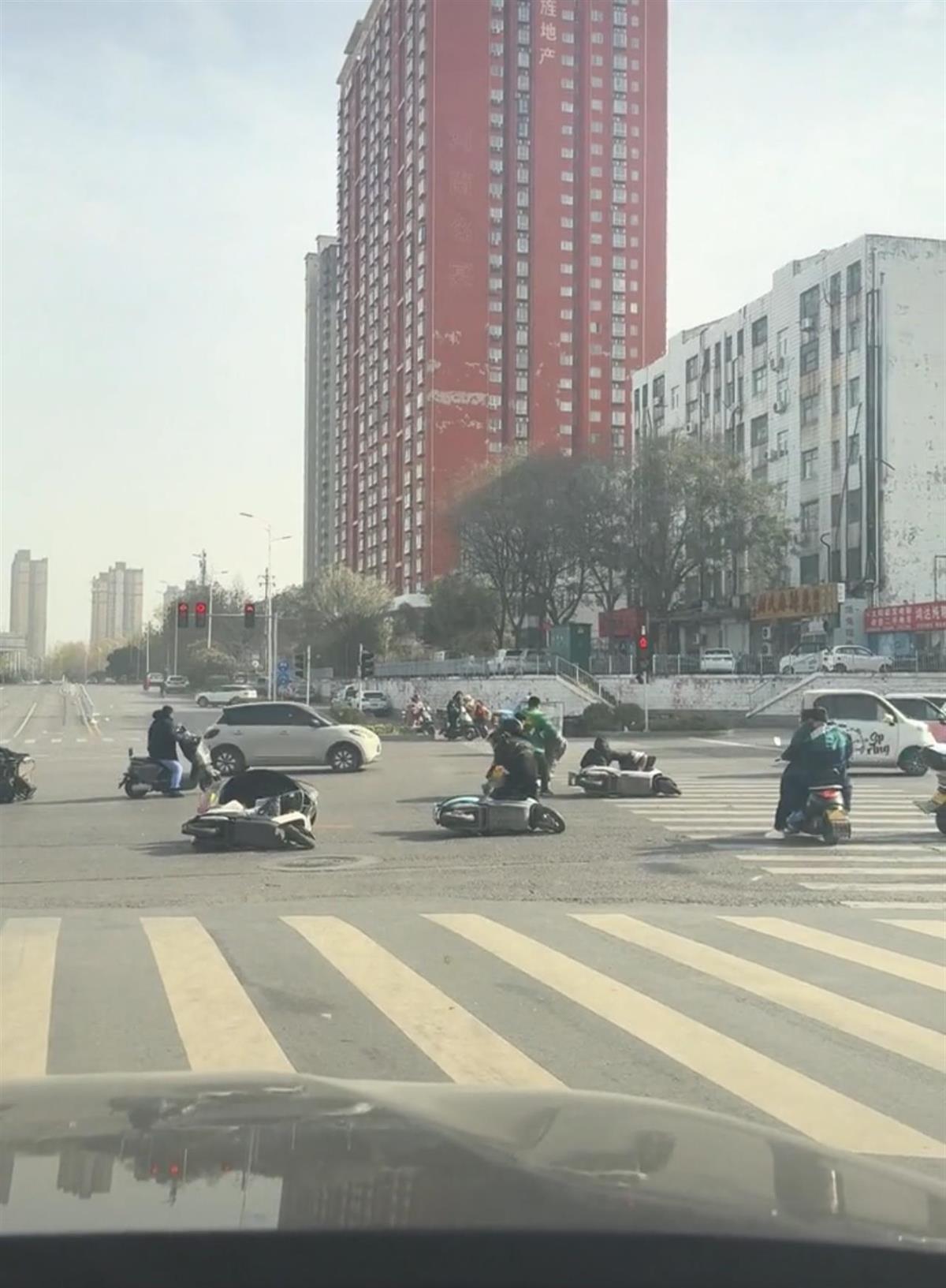 河南多地遭遇大风袭击,不少电瓶车被吹到路中